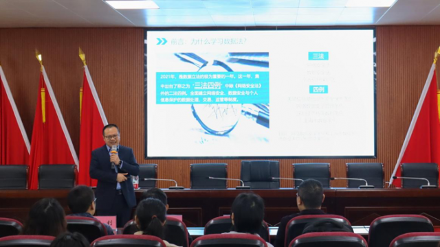 应王金海院长邀请,11月27日上午,数据法律研究院院长饶传平教授赴江西财经大学现代经管学院讲学。饶传平院长以“数字法治的未来——由《个人信息保护法》展开”为主题进行了专题讲座。该讲座作为“南湖大讲堂”院庆系列讲座之一,由文法系副主任万灵娟老师主持,科研与国际部王婧君、黎敬权老师和数据法律研究院研究员李钊、刘彬彬博士等200余名师生聆听了报告。