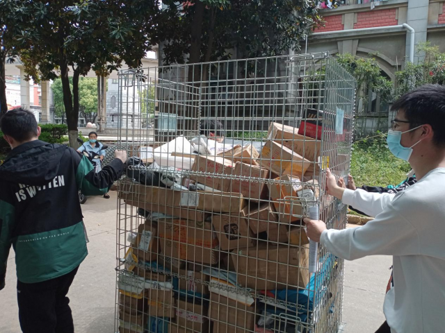 结合学校疫情防控实际情况,志愿者们在校园“准封闭管理”期间协助开展各项日常工作,抓实抓细疫情防控。在4月24日为校内师生分发快递,化身校园“搬运员”,为全院师生的物资温暖护航;线上志愿者则利用互助文档等共享信息,帮助解决同学实际困难。