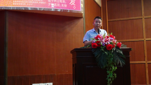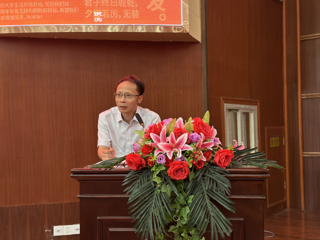 谢红星副院长就本科生培养情况向新生作简要介绍。用“文理兼修,突出特色,学赛一体,全面发展”这十六个字介绍了学院现开设的四个专业方向的培养目标、培养特色和培养计划。他激励本科同学在在大学四年里融会贯通,多参与社会实践和各类学术竞赛,增长见识、积累阅历。