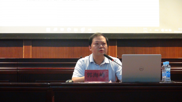 开学典礼在庄严的国歌声中拉开了序幕。郭海峰首先代表学院全体老师欢迎新生加盟法学院,并介绍了出席本次典礼的各位领导、嘉宾。