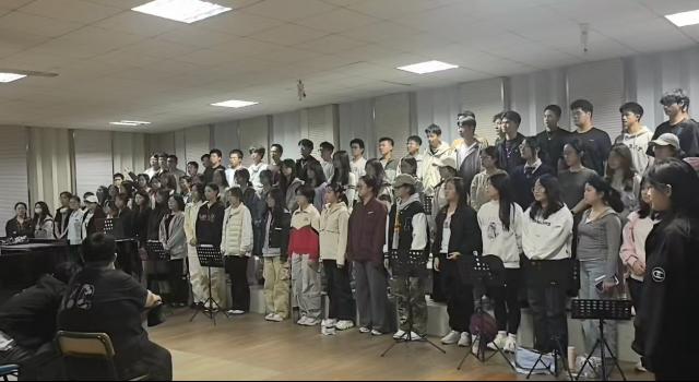 排练现场,同学们的热情驱散了冬日的寒意。指导老师从音准、节奏到情感表达,逐字逐句细致指导;学子们相互配合、反复打磨,从最初的生疏磨合,到逐渐找到和声的默契,每一次排练都是一次成长。声部间的配合愈发和谐,歌声里的坚定与热忱也愈发浓烈,法苑学子的团结协作与青春朝气,在排练的点滴中展现得淋漓尽致。