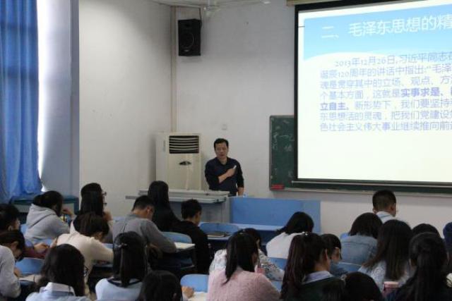 首先,毛书记围绕习近平总书记“两个不能否定”系列讲话论述了改革开放前后的历史是相互不可剥离的这一事实。强调了“两个不能否定”必须从两个方面入手,一是正确认识党在改革开放前历史时期出现的错误和失误;二是正确认识改革开放进程中出现的矛盾和问题。阐述了“两个不能否定”直接涉及中国特色社会主义的坚持与发展,党的执政根基的巩固、全党全国人民思想的凝聚等事关党和国家命运的问题。之后,毛书记从习近平总书记在纪念毛泽东诞辰一百二十周年的讲话中的“实事求是、群众路线、独立自主”三个基本方面带领学员们进行了深入学习,提到要坚持实事求是,不断推进实践基础上的理论创新;把群众路线贯彻到治国理政的全部活动中;坚持民族自尊心和自信心,坚定不移走自己的路。而后,毛书记从三大战役谈毛泽东的军事思想出发,讲述了习近平多次拜访革命圣地西柏坡和毛泽东故乡韶山的事迹,肯定了毛泽东是马克思列宁主义中国化的伟大开拓者这一崇高历史地位。最后,毛书记就“高举毛泽东思想的伟大旗帜,坚定地走中国特色社会主义的道路”对毛泽东思想在关于新民主主义革命、社会主义革命及其建设、革命军队的建设以及军事战略、思政工作建设和党的建设中的发展变化展开了论述,并称毛泽东思想和邓小平理论为继承和发展的关系,没有毛泽东思想就没有邓小平理论。鼓励大家积极学习科学文化知识,提高自身素质,为实现中华民族伟大复兴的中国梦而努力奋斗。