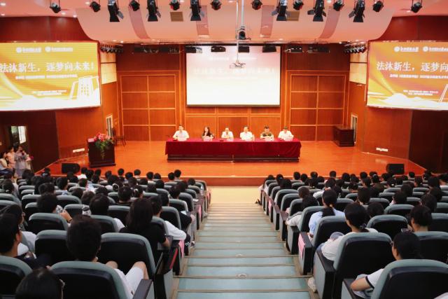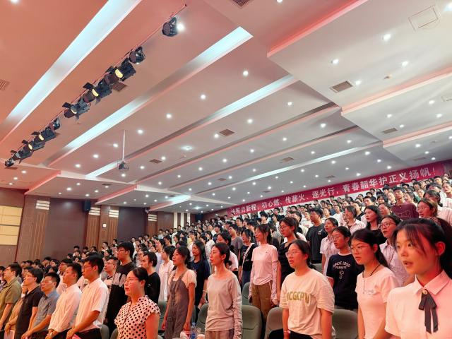 在嘹亮的校歌声中,法学院(纪检监察学院)2025级本科新生开学典礼落下帷幕。