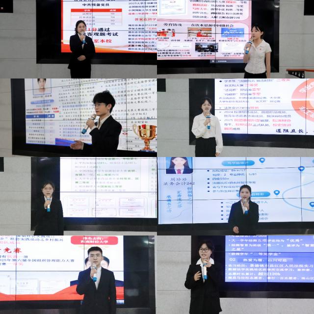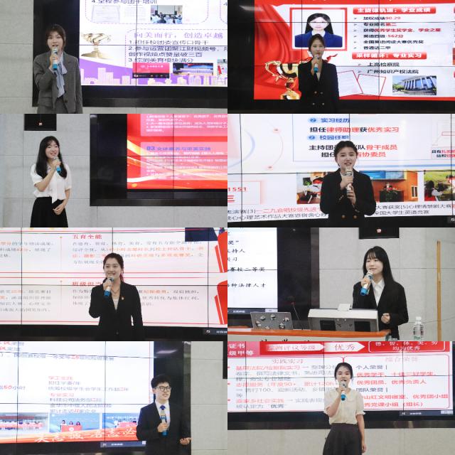 36位来自2022级-2024级的优秀学子们同台竞技,从思想品德、学业成绩、专业技能、职业能力、社会实践、公益服务等多维度展示所学所获。他们有的是加权突破95分断层领先的学术佼佼者,有的在各类法学专业竞赛和各大辩论赛中过关斩将、屡获佳绩,有的在学科前沿的领域持续深入的探索,有的则利用寒暑期扎根基层、服务社会.....一个个努力的片段、温暖的瞬间都闪耀着青春法苑人的光芒,充分展现了学子们的责任担当和学院的育人成效。持续两个小时的打擂活动中不仅是一场别开生面的青春励志盛宴,更是一次宝贵经验交流与成长感悟的分享。候选同学们的精彩展示赢得了现场师生的阵阵掌声。