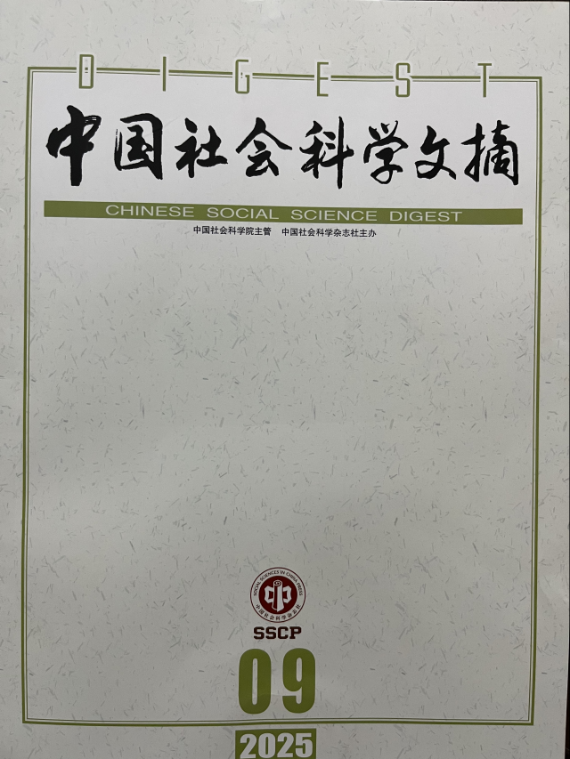 《中国社会科学文摘》是由中国社会科学院主管、中国社会科学杂志社主办的综合性学术文摘期刊,创刊于1980年,以“择优推介人文社会科学重要研究成果”为办刊宗旨。该刊设置历史学、政治学·公共管理、国际关系、法学等十余个栏目,涵盖文学理论、经济学分析、社会学研究等多学科领域,通过转载具有学术创新性的论文,构建起反映学科前沿动态的学术窗口。作为人文社科领域“四大文摘”之一,其转载量已成为学术评价的重要参考依据。 (文/吴宇逍)