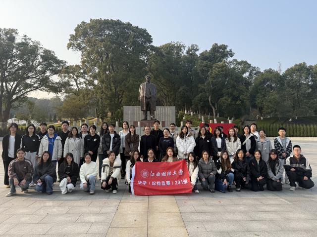 为缅怀革命英烈,传承红色基因。2025年12月11日,江西财经大学法学院(纪检监察学院)2023级纪检监察班全体学生在班主任、院党委书记徐崇波的带领下,前往南昌市方志敏烈士纪念园开展“赓续红色血脉,砥砺初心使命”主题教育活动。