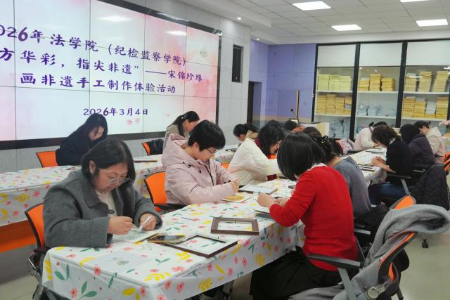 锦韵映芳华 巧手筑匠心——法学院(纪检监察学院)举办“三八”女神节宋锦珍珠画非遗手工活动