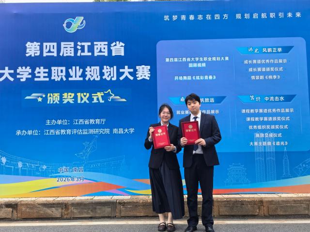 3月9日,第四届江西省大学生职业规划大赛总决赛在南昌圆满落幕。经过激烈角逐,我院学子凭借卓越的职业素养与精彩的现场表现,从全省高校精英中脱颖而出,一举斩获两项金奖,实现了学院在该项赛事上的重大历史突破!